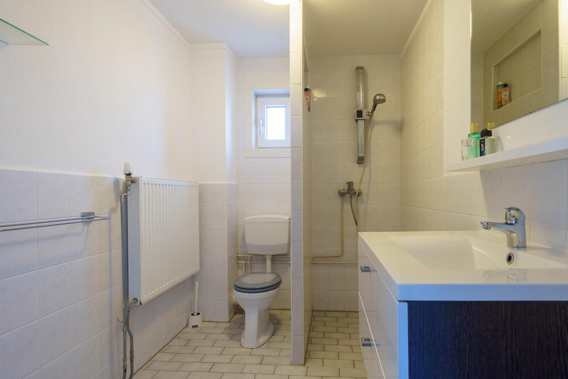 • Badkamer met inloopdouche, 2e toilet, wastafelmeubel en raam in de zijgevel